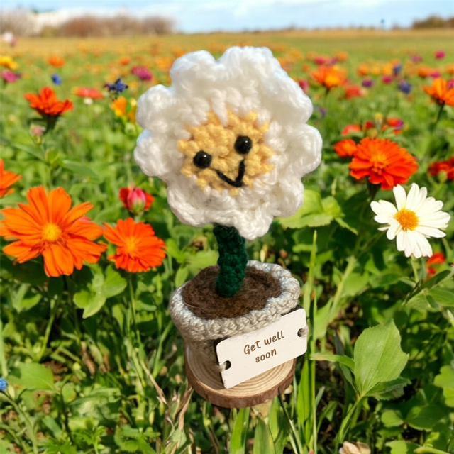 Crocheted positive pal (flower) with the following message